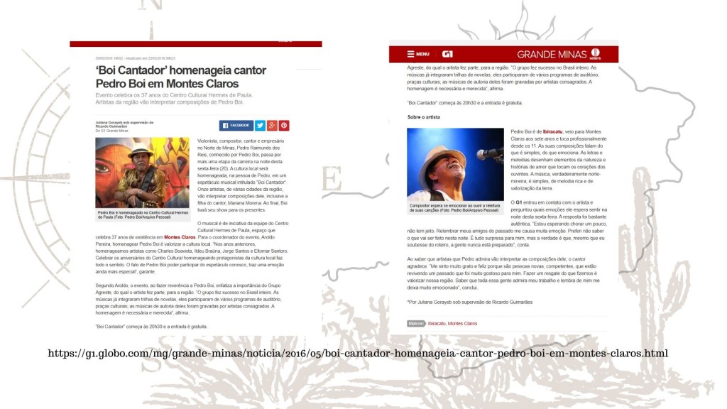 No 37º Aniversário do Centro Cultural de Montes Claros – MG, Pedro Boi e Grupo Agreste foram homenageados por músicos da cena contemporânea.